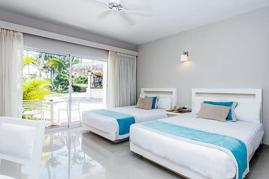 Sun Club Jr. Tropical View -Adults Only Double is 570 square feet and includes 2 double beds 131-150 width plus desk, satellite tv , hairdryer, and slippers.